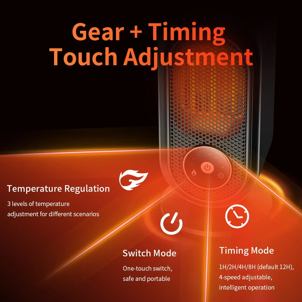 ��️Chauffage par ventilateur à 3 vitesses + minuterie de 4 heures : réglages de ventilateur à 3 vitesses (air chaud/air chaud/air naturel) pour répondre aux différents besoins de chauffage ;Arrêt par minuterie à 4 vitesses (2/4/6/8 heures) pour régler avant le coucher, assurant un sommeil paisible tout en économisant de l'énergie et en offrant une tranquillité d'esprit.